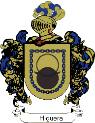Es claro en castellano: 2) Casa Solar: Deriva del linaje de los Figuera o Figueroa, dato que se observa al llevar las mismas armas. En Villacarriedo, provincia de Cantabria, existió una familia que se denominó Pérez de Higuera, por entronque familiar (ver linajes.net). En Cantabria, el apellido De la Higuera se encontraba diseminado, en 1753, por los siguientes pueblos: Navajeda (Entrambasaguas), Liérganes (Liérganes), Miera (Miera), Penagos (Penagos), Liencres (Piélagos), Riotuerto y Rucandio (Riotuerto) y Matienzo (Ruesga). Nuestros antepasados con este apellido vivieron en Riotuerto, Cantabria. 3) Armas: En campo de oro, una caldera de sable rodeada de una cadena de azur. Otro: En campo de oro, cinco hojas de higuera de sinople puestas en aspa. Bordura de plata con el lema en letras de sable 'Por Dios y por la Patria'. Otro: En sinople, un vuelo, de azur, sumado de un árbol, de oro. 4) Antepasados (ver metodología de investigación). —Tronco común (con dos ramas): I. Juan de la Higuera Cañizo (6° abuelo de Luisa de la Vega Cobo) nació hacia 1615 probablemente en Riotuerto, Cantabria. Casó con Maria de Fontarnosa (ver Fontarnosa) antes de 1641. Tuvieron por hijos, antes de 1641, a 1°) Juan (ver la primera rama), 2ª) María y 3ª) Catalina (ver la segunda rama); y antes —Primera Rama: entronca con Gómez (ver árbol genealógico) II. Juan de la Higuera Fontarnosa (5° abuelo) nació hacia 1640 en Riotuerto, Cantabria. Casó con Juana de Aparte (ver Aparte) (M 23-I-1667 LSM 254). Tuvieron por hijos a 1°) Andrés (B 8-XII-1669 LSM 112), 2°) Pedro (B 30-VI-1672 LSM 120), 3ª) Isabel (B 24-II-1685 LSM 175), 4ª) Manuela (B 14-XII-1687 LSM 208, casada con Gabriel de Meruelo entre 1717 y 1723). También, junto con Isabel, en el censo de 1705 aparecen como hijos suyos: 4°) Mateo y 5ª) María (que sigue). En el censo de 1717 se registra que sólo vivía Manuela con sus padres. III. María de la Higuera Aparte (4ª abuela) nació antes de 1705 (probablemente hacia 1690), en Riotuerto, Cantabria. Casó con Fernando Gómez del Monte (ver Gómez del Monte: tercer linaje de Gómez) entre 1705 y 1717. Tuvieron por hijos, antes de 1717 a 1°) Pedro, 2ª) Manuela y 3ª) Bárbara. Fernando y María, en 1730, todavía vivían con sus tres hijos. Los dos mayores se casaron entre 1730 y 1737 (Pedro con Francisca Zorrilla y Manuela con García del Castillo), y Bárbará después de 1737). Nuestra familia procede de Bárbara Gómez de la Higuera, que casó con Agustín Gómez de la Mier hacia 1740. —Segunda Rama: entronca con De la Mier (ver árbol genealógico) II. Catalina de la Higuera Fontarnosa (6ª abuela) nació en Riotuerto, Cantabria, hacia 1640. Casó con Santos de la Mier Gómez de Quintana (ver De la Mier), en Riotuerto (M 5-II-1663 LSM 238 y M 24-II-1664 LSM 243). Tuvieron por hijo a Mateo (B 1-VI-1666 LSM 094), del cual procede nuestra familia, que casó con María de Langre en Riotuerto (M 2-III-1688 LSM 308). Santos de la Mier murió en Flores de la Sierra, Castilla la Nueva, en octubre de 1681 (ver abajo su partida). 5) Ruta genealógica: