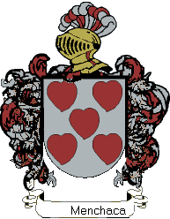 casa solariega Minzaca, que en ese tiempo "corruto 2) Casa solar: En Gatica y Urduliz, en Bizkaia, en el valle de Okendo, Alaba, y en Oñate, Guipúzcoa. Una rama pasó a Sevilla. En Lauquiniz (o Laukiz) hubo varias casas llamadas "Menchaca" situadas en el barrio de Menchaqueta. También los "Menchaca" poseían casas en Gatika (ver Menchacatorre). 3) Armas: La casa de Gatica: En azur, cinco panelas de oro, puestas en aspa, y en punta, ondas de agua de azur y plata (ver Menchacatorre). Algunos añaden una bordura de gules, con ocho aspas de oro. Otros, según Cadenas y Vicent: en plata, cinco panelas de gules, puestas en aspa. Otros: En oro, un león escacado de plata y gules. Según el Repertorio de Blasones de la Comunidad Hispánica: Los de Portugalete, usan: En sinople, un puente de tres ojos, de oro, sobre ondas de plata y azur (Aporte de Oscar Barea). 4) Antepasados: (ver árbol genealógico) I. Ana de Menchaca (6ª abuela de Cándido Madaleno Gasteasoro) nació en Gatika, Bizkaia, hacia el año de 1630. Conocemos su nombre por la partida de bautismo de su nieta Mari Cruz de Mendieta (b: Lemoa, 18-V-1675). Casó con Ignacio de Etxeandía (ver Etxeandia), probablemente en Gatika, hacia 1655. Tuvieron por hija a María de Etxeandía y Menchaca, que nació en Gatika hacia el año 1650. Casó con Juan de Mendieta Ibarra, originario de Lemoa (Bizkaia) hacia 1672. 5) Ruta genealógica: Menchaca ® Etxeandía ® Mendieta ® Alzibar ® Gasteasoro ® Madaleno. 6) Otros datos: