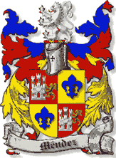 antigüedad y origen del norte de España 2) Casa solar: Sus casas más antiguas se situan en: Vigo, Cangas de Tineo, Gijón, Sanabria, de la cual procede la de Alcobendas, Santo Domingo de la Calzada y en Higuera la Real. La de Alava enlazó con los Mendoza, linaje castellano oriundo de Llodio. Pasó a América, radicando en Cuba, Argentina y México. Nuestros antepasados de este apellido se establecieron en Querétaro (México). 3) Armas: Los de Galicia y Andalucía: Escudo cuartelado: 1º y 4º, en campo de gules, un castillo de plata, acostado a la siniestra de un león de su color; y 2º y 3º, en campo de oro, una flor de lis de azur. Los de Curtis, La Coruña y Cuba: En campo de sinople, tres torres de plata, almenadas, aclaradas de sable y mazonadas de lo mismo; y surmontándolas, una cruz, flordelisada, de oro. Los de Asturias: En campo de gules, una cruz de ocho puntas, de plata, semejante a la de San Juan de Jerusalén, puesta sobre ondas de mar de azur y plata. Los de Piñeira: En campo de oro, una espingarda de azur, puesta en banda. Otro: En campo de azur, un ancla con cabos de oro y hierros al natural; partido de gules, con un brazo armado empiñando una espada, ésta superada de una corona de oro. 4) Antepasados: —Hay dos linajes Méndez en nuestra familia. Ambos proceden de Querétaro (Nueva España en el siglo XVI): —Primer Linaje: entronca con Rico de Rojas (ver árbol genealógico) I.