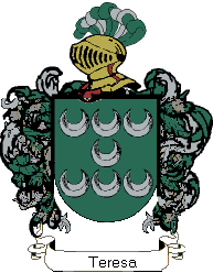 nombre castellano Teresa. 2) Casa solar: En el Concejo de Llanes, Asturias. 3) Armas: En campo de sinople, siete lunas de plata. 4) Antepasados: (ver árbol genealógico) I. Teresa de Teresa (tatarabuela de Ángela de Mijares Merodio) nació probablemente en la Villa de Llanes, Asturias, hacia el año de 1705. Hacia 1725 casó con Alonso Parás (ver Paras). Tuvieron por hija a María Santa Parás Teresa, que nació hacia 1730 y casó hacia 1755 con Antonio Mijares García. 5) Ruta genealógica: Teresa ® Parás ® Mijares ® Sordo. 6) Otros datos: *. | |